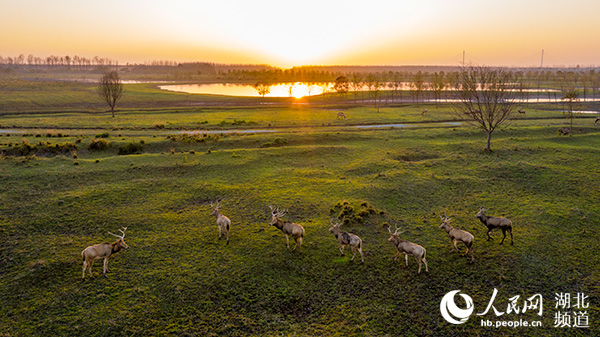 20世纪90年代,中英启动麋鹿重引进项目,选定石首天鹅洲2.3万亩湿地为首个麋鹿野化放归基地,麋鹿重回故乡。党的十九届五中全会提出坚持尊重自然、顺应自然、保护自然,强调“推动绿色发展,促进人与自然和谐共生”。保护麋鹿就是保护生态,是长江大保护的重大行动。