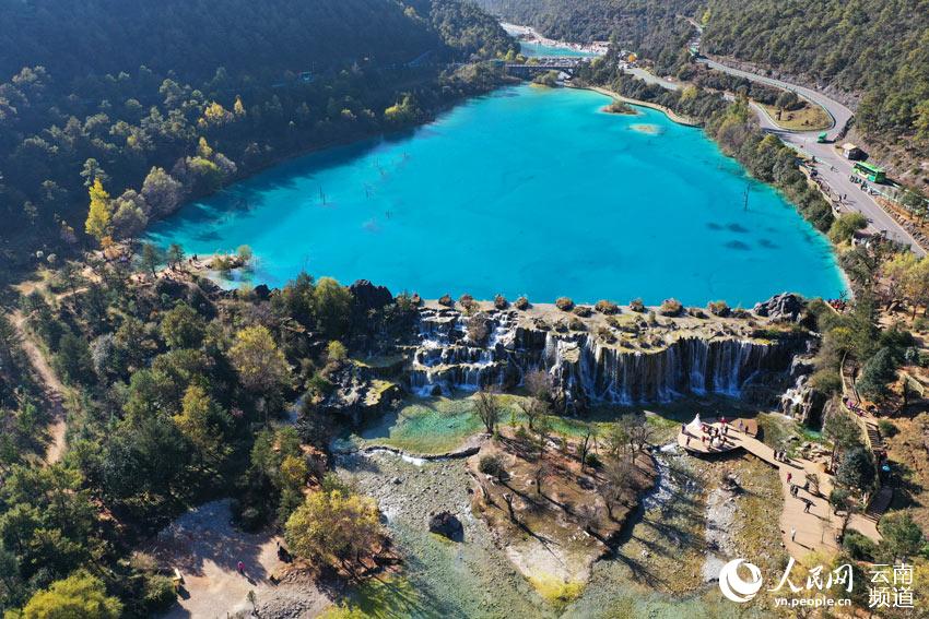 沿金沙江支系黑白水河回溯,至上游的白水河,分布着玉液湖、镜潭湖、蓝月湖、听涛湖4个小型湖泊,这里是云南丽江玉龙雪山东麓的蓝月谷景区。初冬时节,走进蓝月谷,巍峨的雪山下,蓝绿色的湖水在阳光下闪着粼粼波光,景区随处可见拍摄婚纱照的新人,成为蓝月谷一道亮丽的风景。
