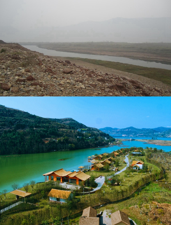 江陵坝新(下)旧(上)样貌对比图。中法农业科技园供图